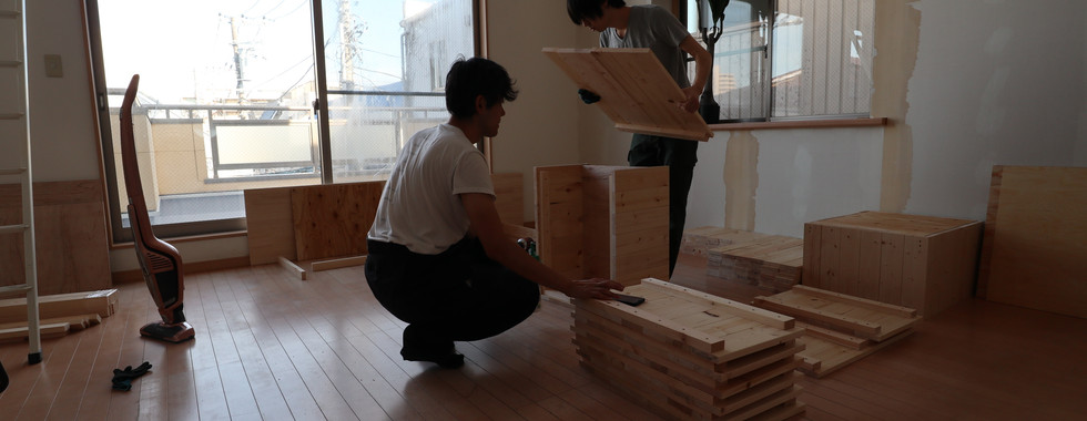 ソファの土台は1×4材、枠は2×2材を使用して1人用のソファを8脚つくりました♪